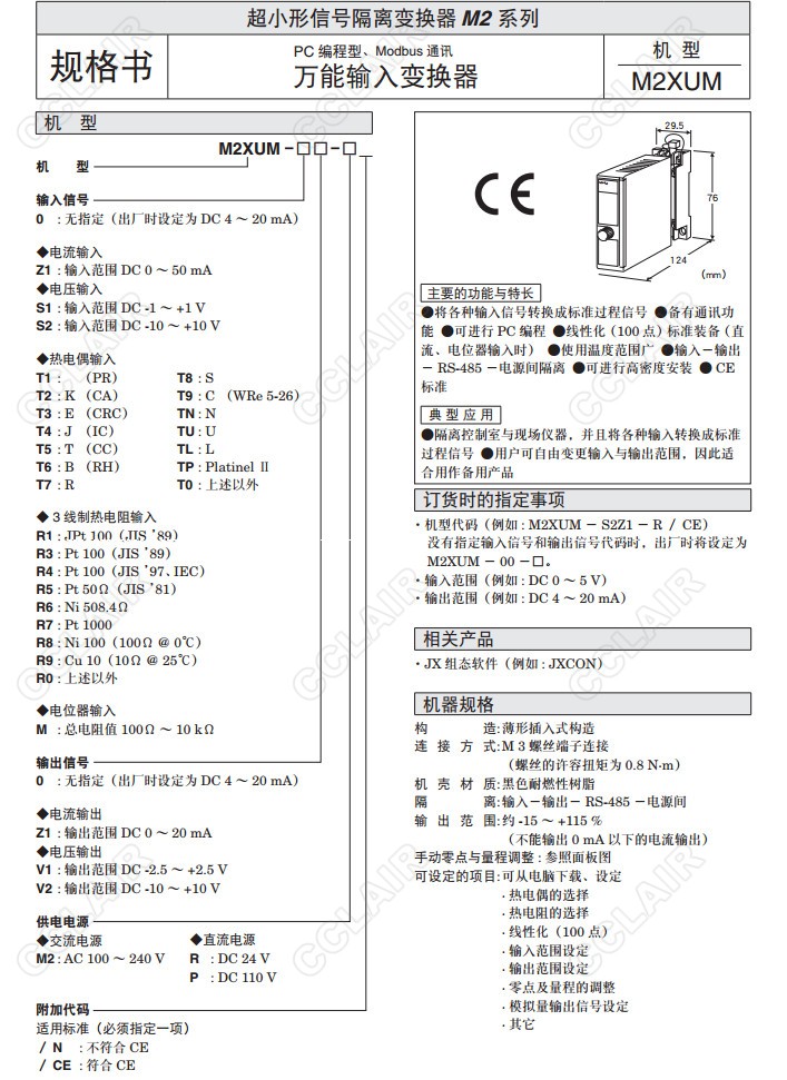 M2XUM,M2XUM-Z1 Z1,M2XUM-S1 Z1,M2XUM-S2 Z1,M2XUM-Z1 Z1,萬(wàn)能輸入變換器(PC編程型、Modbus通訊)