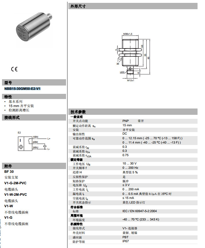 NBB15-30GM50-E2-V1電感式接近開關(guān)