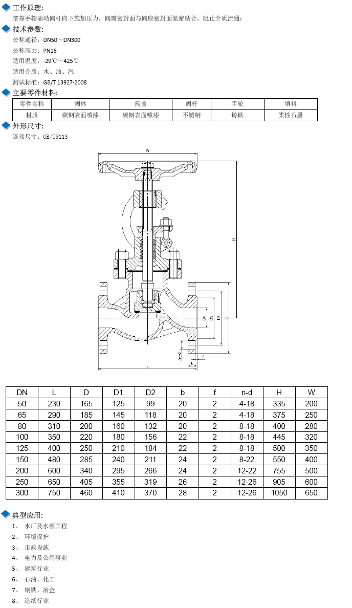 W-J41H-16C-DN50,W-J41H-16C-DN65,W-J41H-16C-DN80,W-J41H-16C-DN100,截止閥
