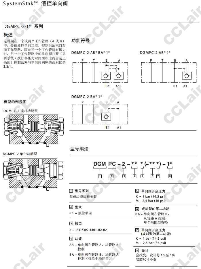 詳細信息 DGMPC-2,DGMPC-2-ABK-10,DGMPC-2-ABM-10,DGMPC-2-BAK-10,液控單向閥