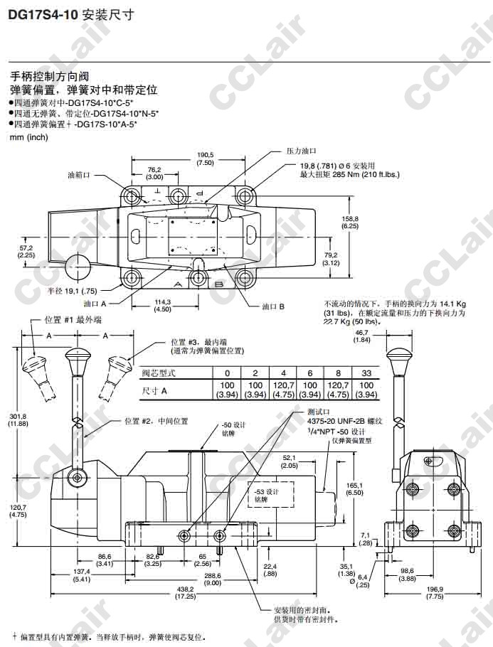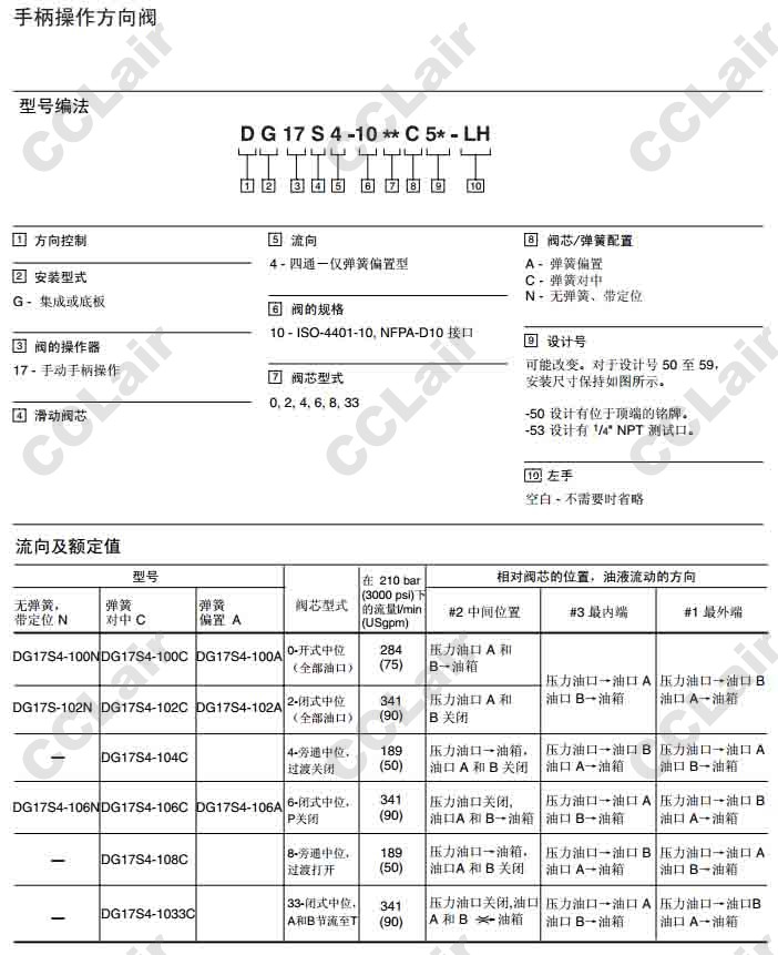 DG17S4-10,DG17S4-100N50,DG17S4-100C50,DG17S4-100A50,DG17S4-106A50,威格士-Vickers,手柄操作方向閥