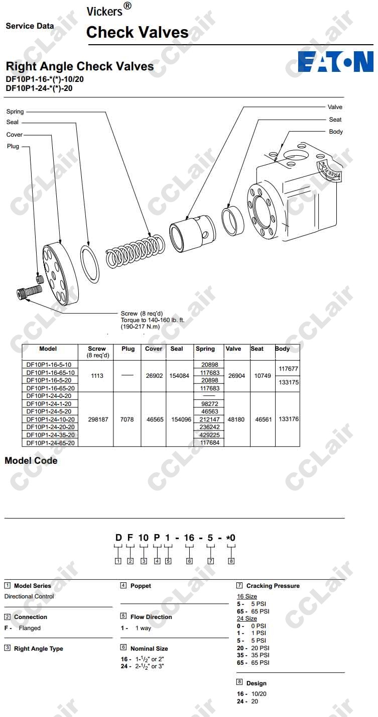 DF10P1-16,DF10P1-24,DF10P1-16-5-10,DF10P1-16-65-10,DF10P1-16-5-20,威格士-Vickers,直角單向閥