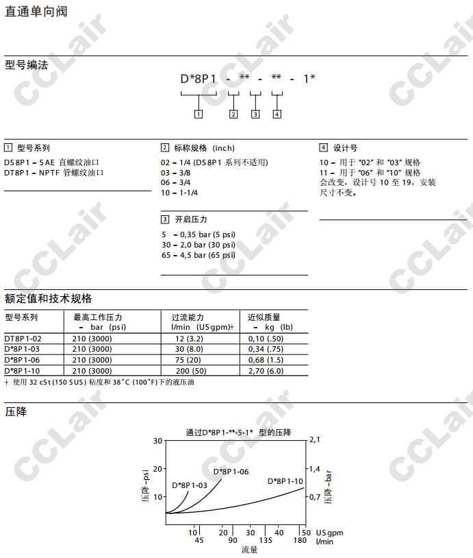 DT8P1-02,DT8P1-03,DT8P1-06,DT8P1-10,DT8P1-02-5-10,直通單向閥
