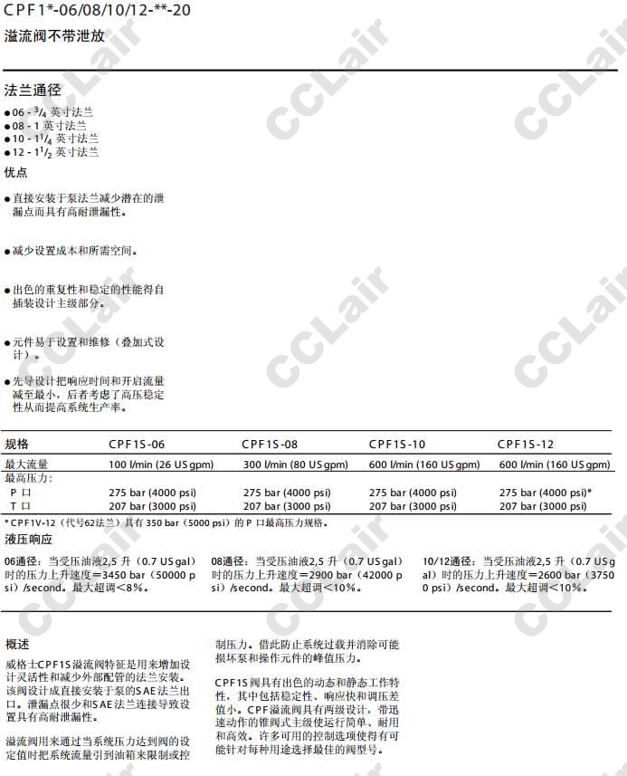 CPF1S-06,CPF1S-08,CPF1S-10,CPF1S-12,CPF1V-12,CPF1S-08-A-W B-20,vickers威格士, 溢流閥