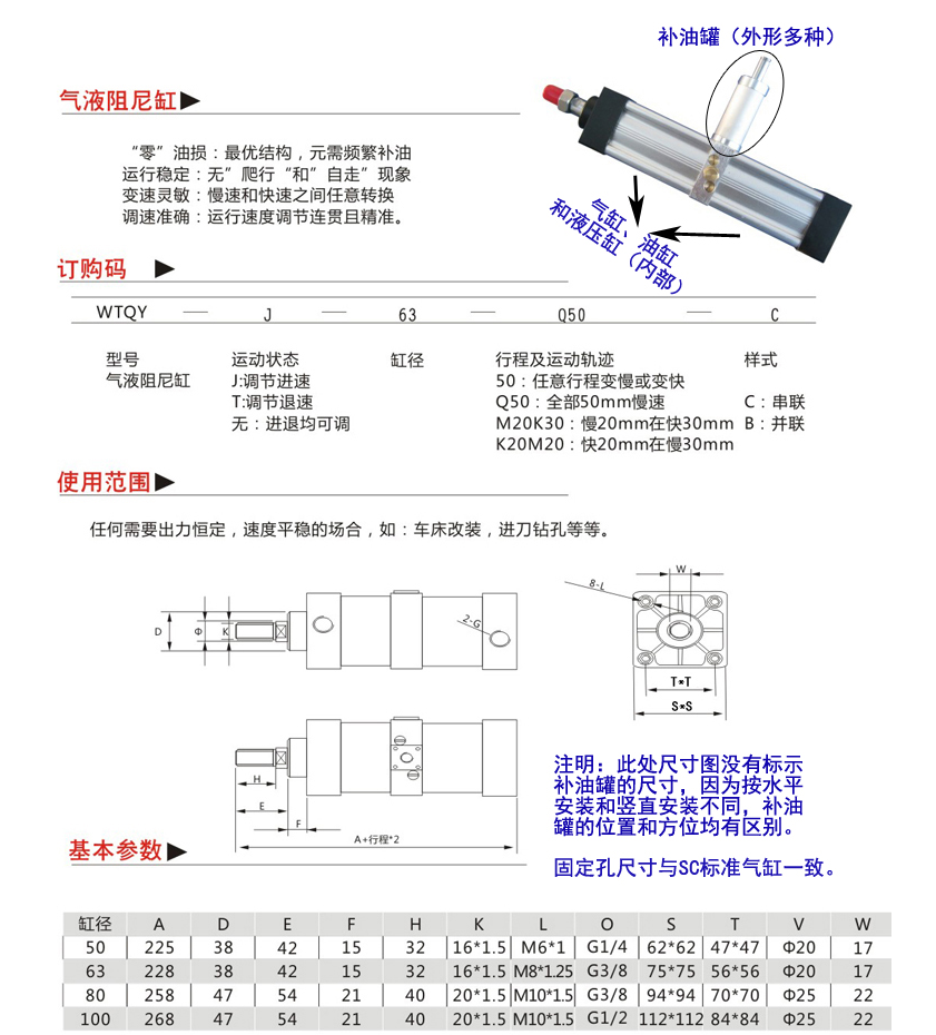 WTQY-J-50-50-C,WTQY-J-50-50-B,WTQY-J-50-Q50-C,WTQY-J-50-Q50-B,氣液阻尼缸