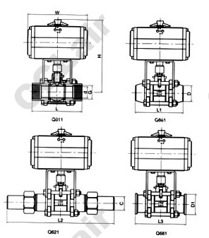 五、氣動三片式球閥主要外形和連接尺寸單位(mm):
