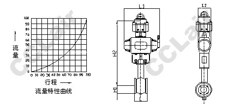 ■ V形球閥芯上具有近似等百分比流量特性的V形和具有近似線性流量特性的U形二種缺口形式,因而無(wú)須通過(guò)定位器調(diào)整,即能實(shí)現(xiàn)不同流量特性的流量控制。