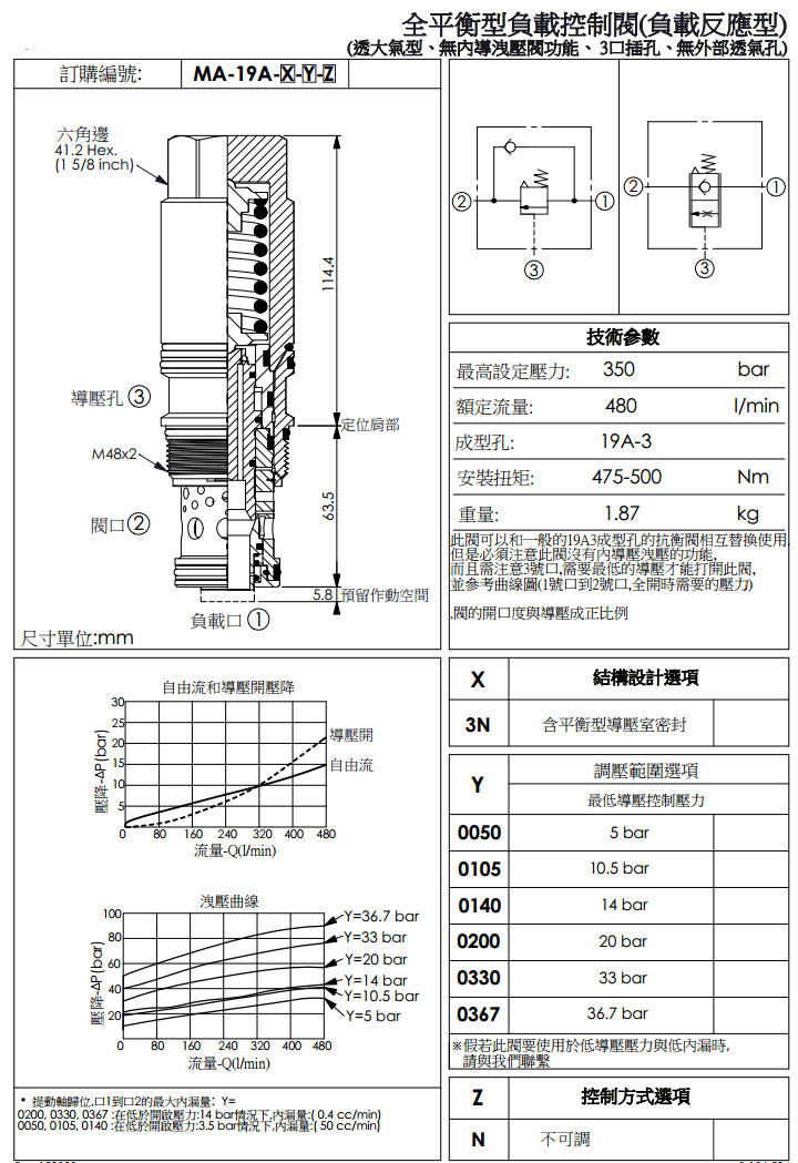 MA-19A-3N-0050-N,MA-19A-3N-0105-N,MA-19A-3N-0140-N,MA-19A-3N-0200-N,winner全平衡型負載控制閥