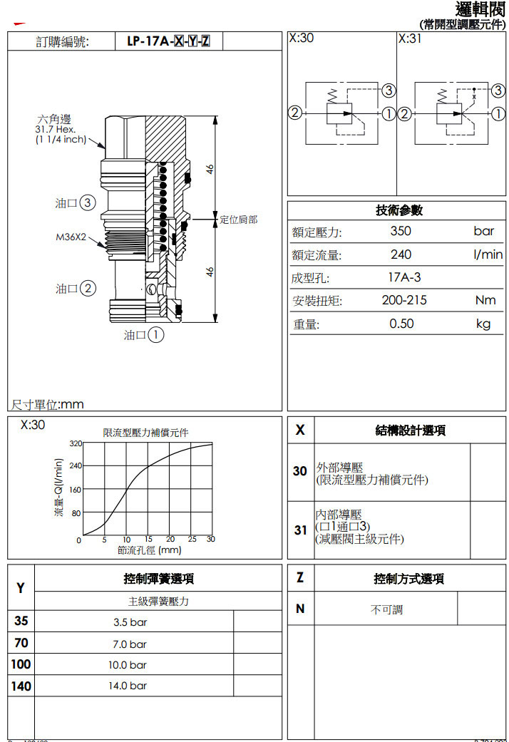 LP-17A-30-35-N,LP-17A-30-70-N,LP-17A-31-100-N,LP-17A-31-140-N,winner邏輯閥
