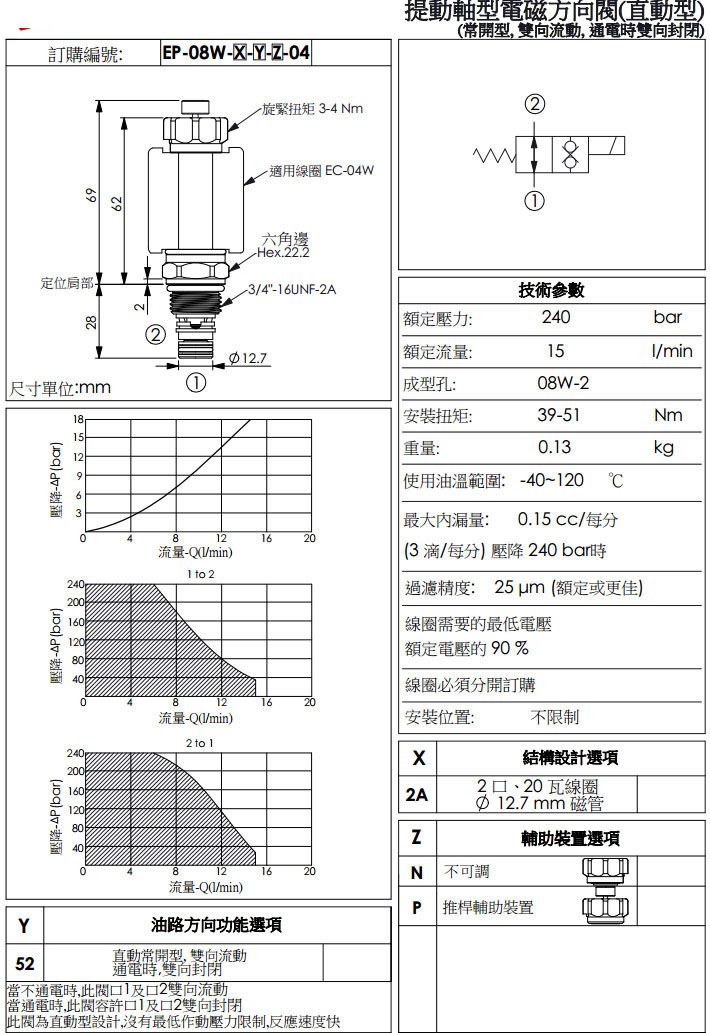 產品: 瀏覽次數(shù):661EP-08W-2A-52-N-04,EP-08W-2A-52-P-04,winner提動軸型電磁方向閥