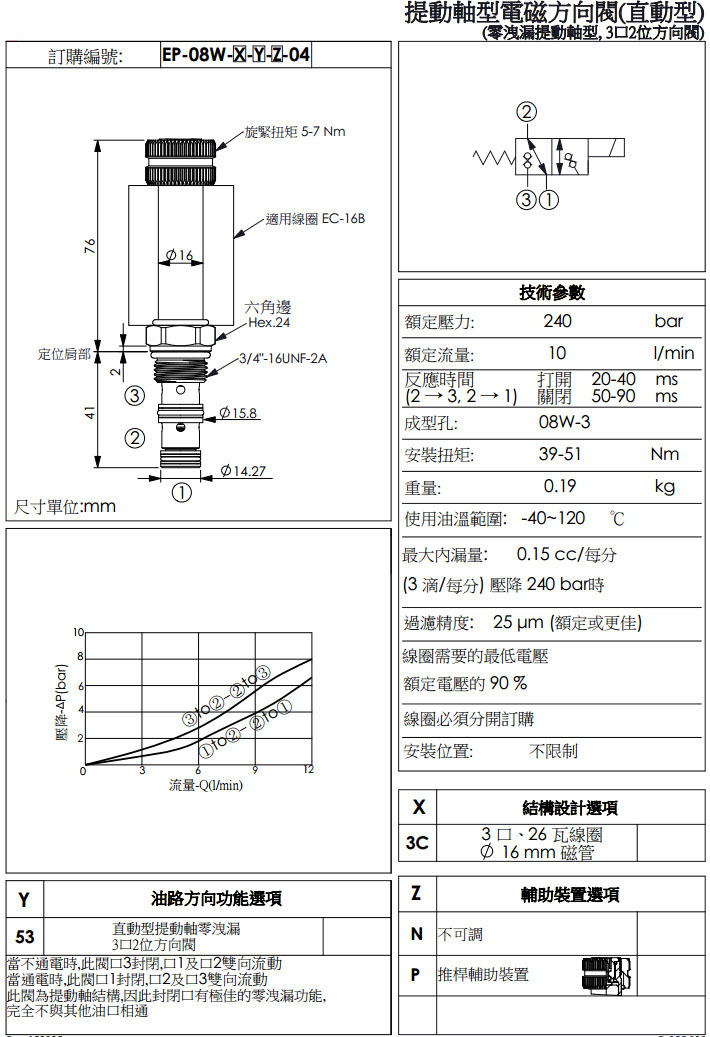 詳細(xì)信息 EP-08W-3C-53-N,EP-08W-3C-53-P,winner提動軸型電磁方向閥