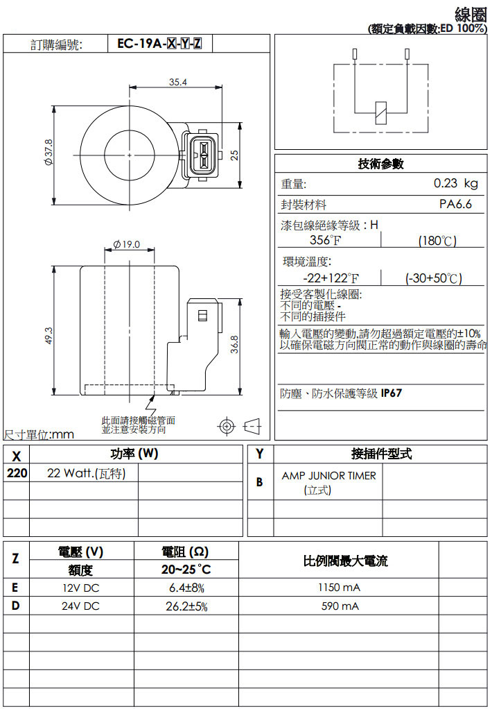 詳細(xì)信息 EC-19A-220-B-E,EC-19A-220-B-D,winner線圈