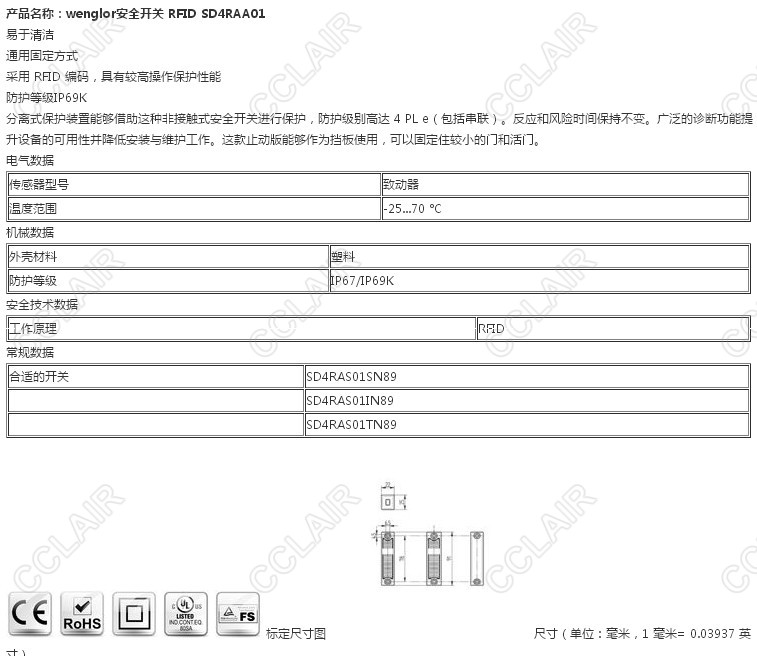 詳細(xì)信息 SD4RAA01,wenglor安全開(kāi)關(guān)RFID