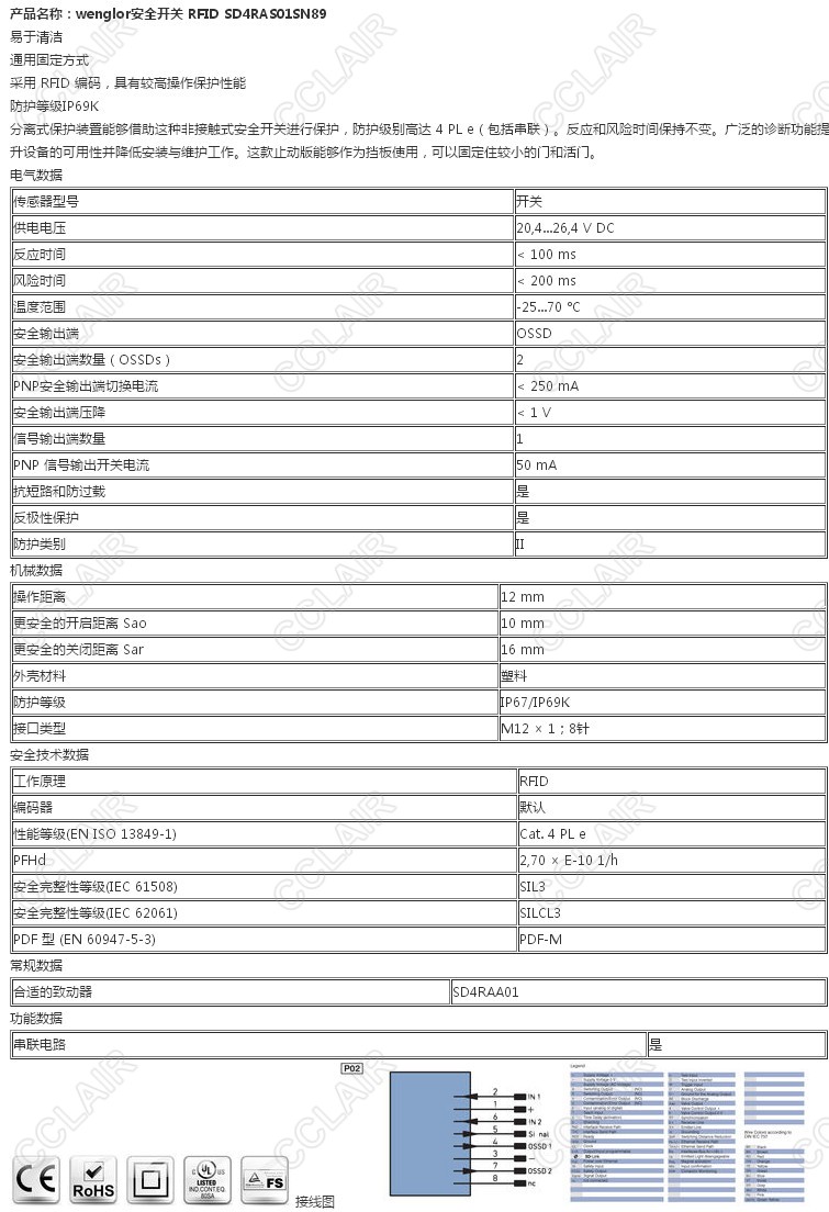 詳細(xì)信息 SD4RAS01SN89,wenglor安全開關(guān)RFID
