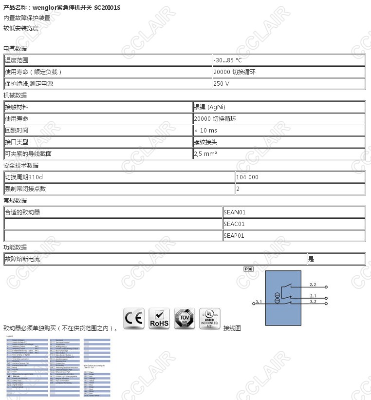 詳細(xì)信息 SC20I01S,wenglor緊急停機(jī)開關(guān)