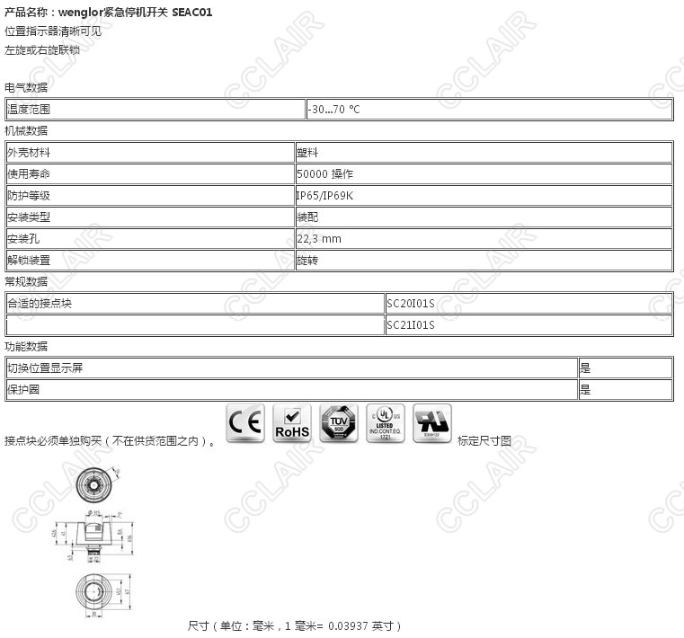 詳細(xì)信息 SEAC01,wenglor緊急停機(jī)開(kāi)關(guān)
