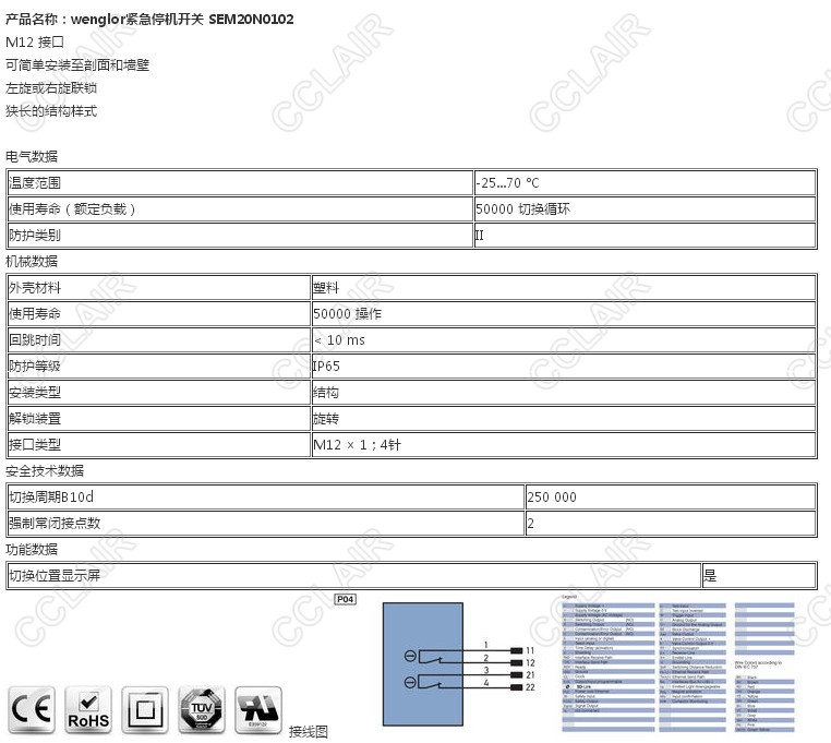 詳細(xì)信息 SEM20N0102,wenglor緊急停機(jī)開關(guān)