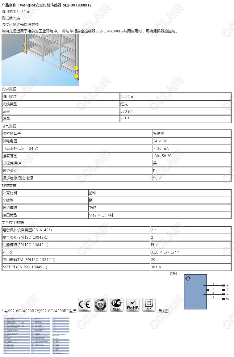 SL2-00TSOOOH2,wenglor安全對射傳感器