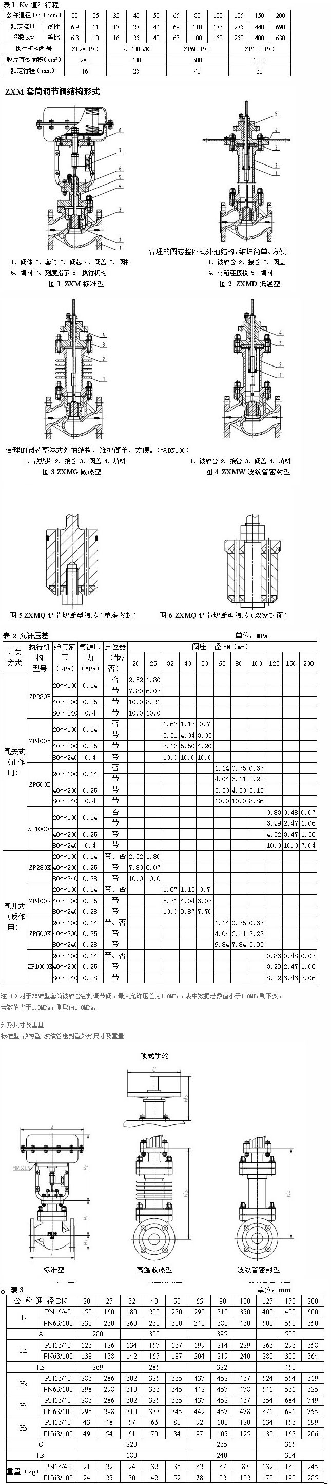 ZXM型系列氣動(dòng)薄膜帶波紋管套筒調(diào)節(jié)閥采用頂導(dǎo)向結(jié)構(gòu),配用多彈簧執(zhí)行機(jī)構(gòu)。具有結(jié)構(gòu)緊湊、重量輕、動(dòng)作靈敏、流體通道呈S流線型、壓降損失小、閥容量大、流量特性精確、拆裝方便等優(yōu)點(diǎn)。
