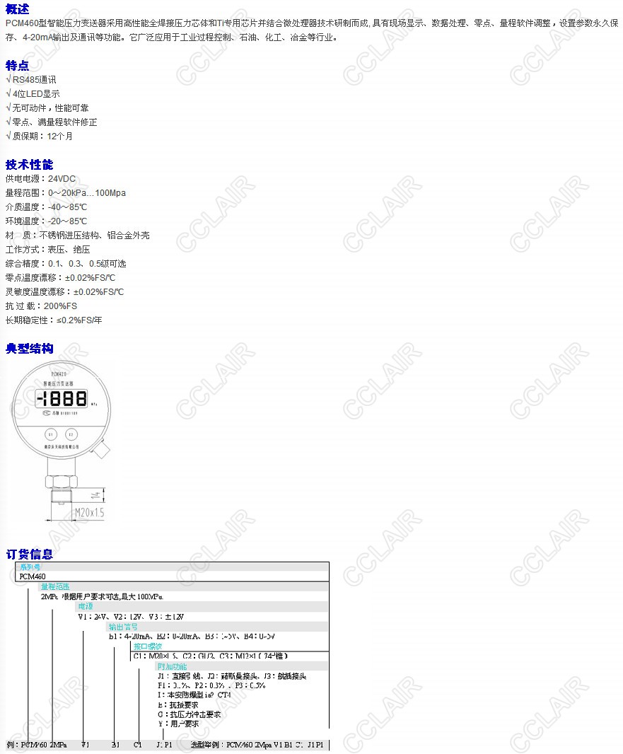 PCM460-2MPa-V1-B1-C1,PCM460-2MPa-V1-B1-C2,PCM460-2MPa-V1-B1-C3,PCM460-2MPa-V1-B2-C1,PCM460型智能壓力變送器
