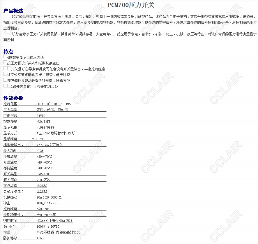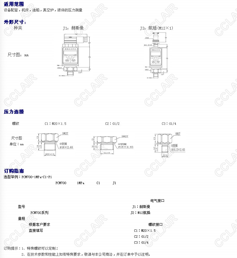 詳細(xì)信息 PCM700-1MPa-C1-J1,PCM700-1MPa-C2-J1,PCM700-1MPa-C3-J1,PCM700-1MPa-C1-J2,PCM700-1MPa-C2-J2,PCM700-1MPa-C3-J2,壓力開關(guān)