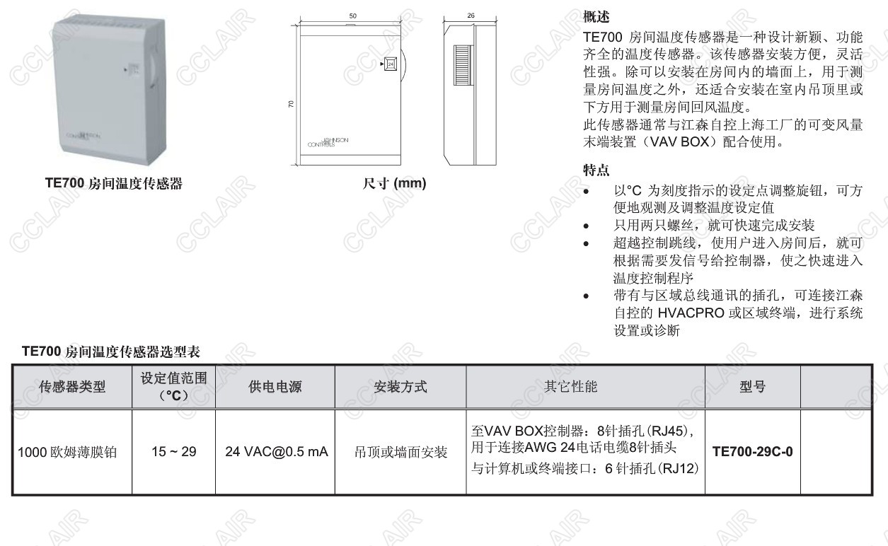 詳細(xì)信息 TE700-29C-0,TE700,Metastat房間溫度傳感器