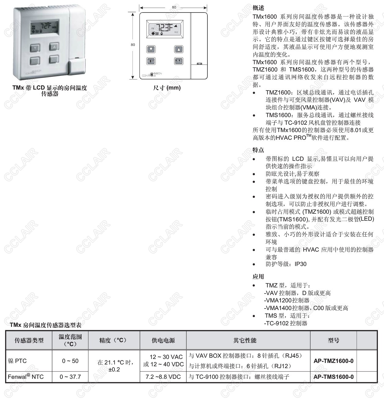 詳細(xì)信息 AP-TMZ1600-0,AP-TMS1600-0,TMx1600,帶LCD顯示房間溫度傳感器