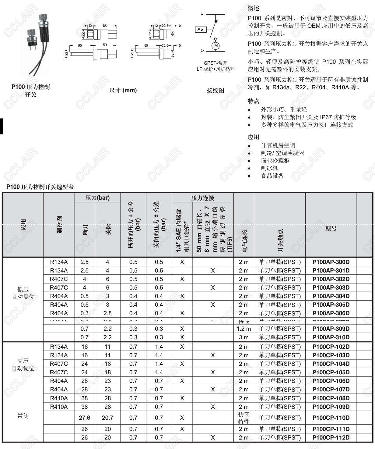 P100AP-300D,P100AP-301D,P100AP-302D,P100AP-303D,P100AP-304D,P100,直接安裝壓力控制開關(guān)