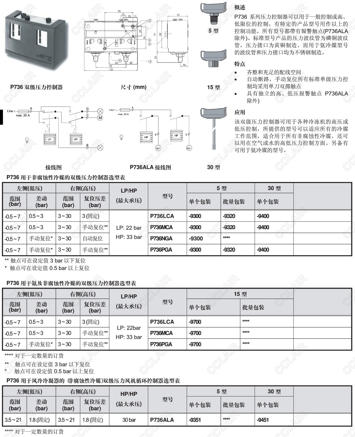 P736LCA,P736MCA,P736NGA,P736PGA,P736ALA,P736LCW,P736MCB,P736MCS,P736,雙級壓力控制器