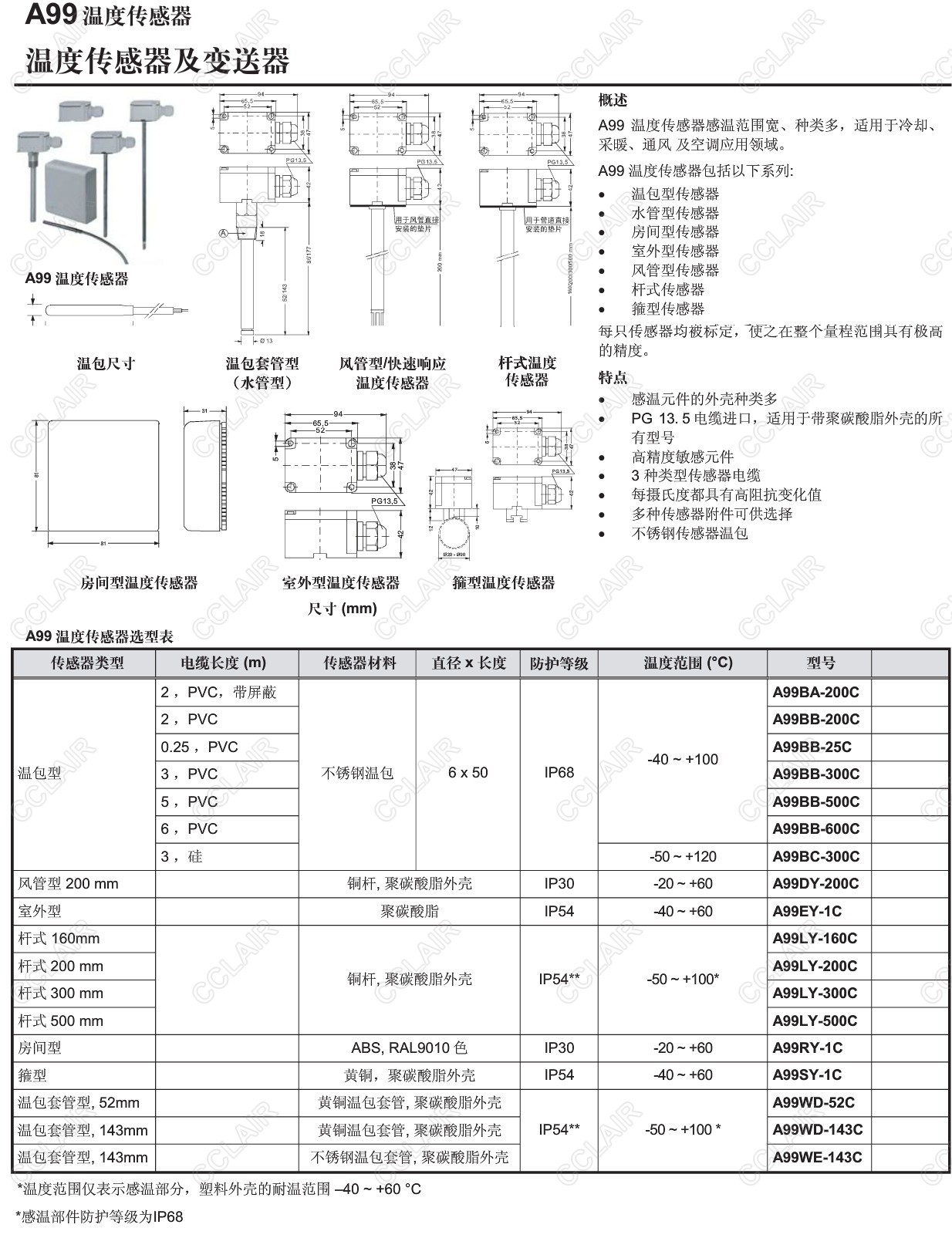 詳細信息 A99BA-200C,A99BB-200C,A99BB-25C,A99BB-300C,A99BB-500C,A99BB-600C,A99,溫度傳感器