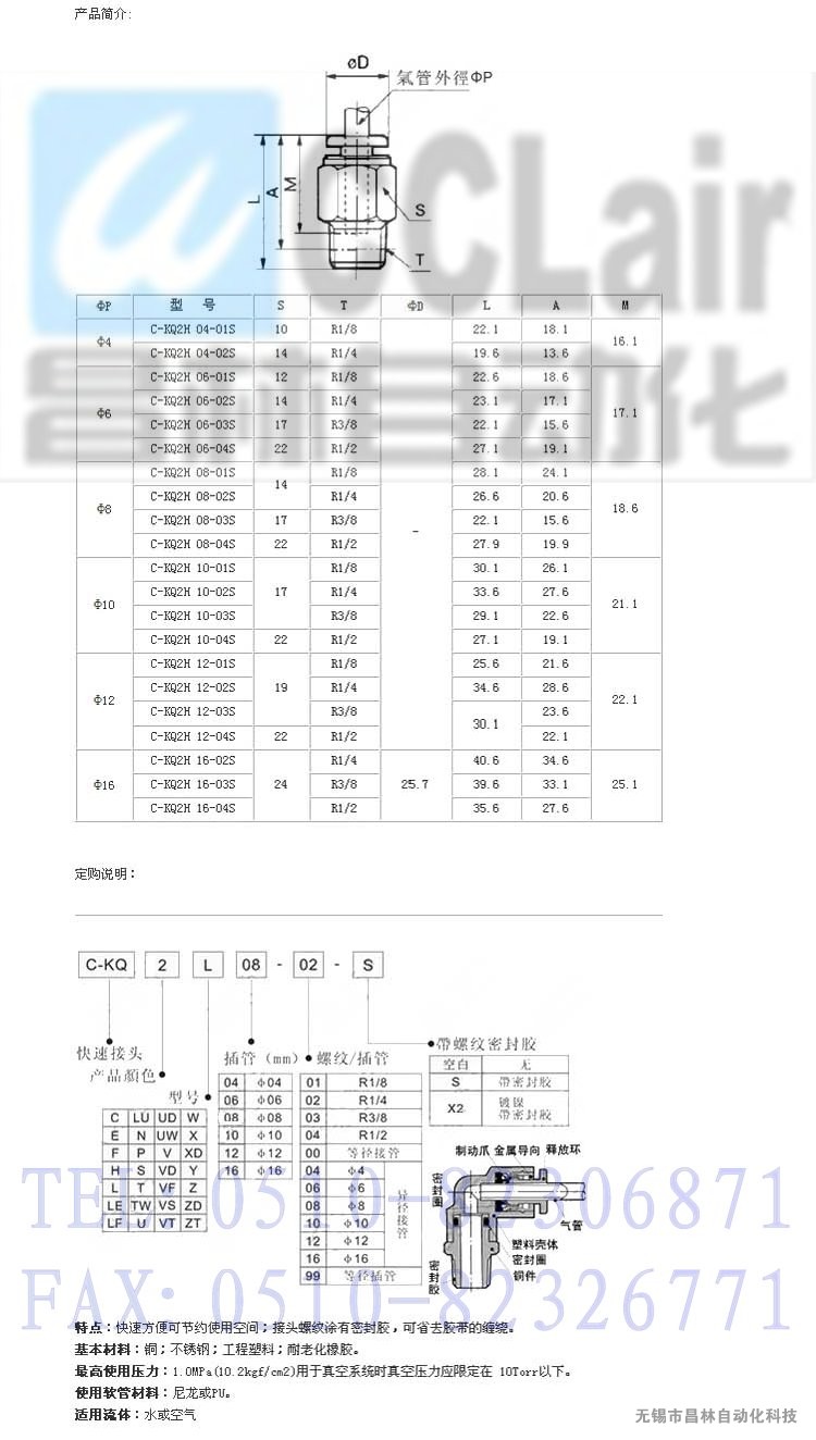 C-KQ2H10-01S,C-KQ2H10-02S, C-KQ2H10-03S,C-KQ2H10-04S, 外螺直接頭
