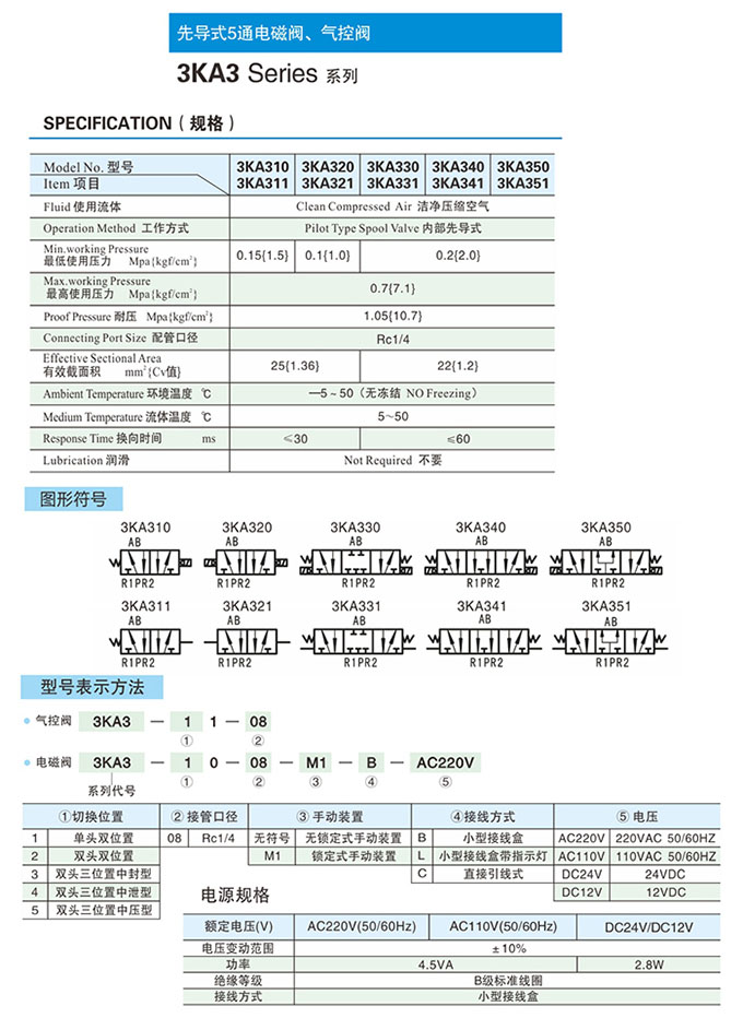 詳細(xì)信息 3KA310-08,3KA320-08,3KA330-08,3KA340-08,3KA350-08,3KA310-08-B,先導(dǎo)式五通電磁閥