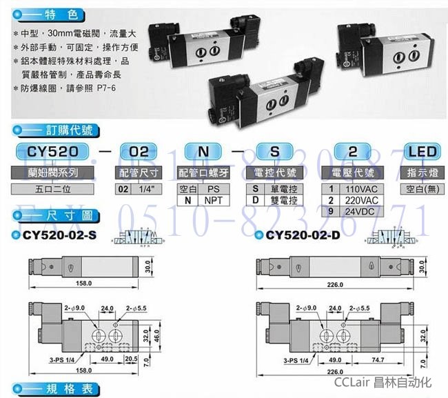 CY520-02-S,CY520-02-D,電磁閥,新恭電磁閥,價格