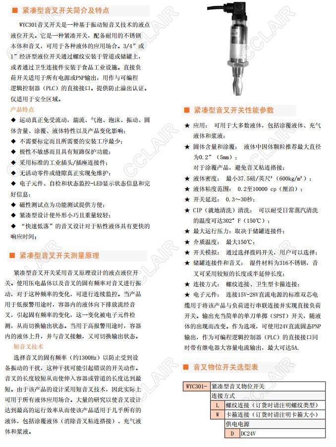 WYC301-LD,WYC301-WD,WYC301音叉開關(guān)