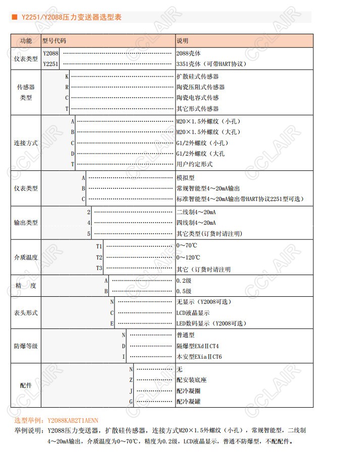 型號: Y2088KAA2T1,Y2088KAB2T1AENN,Y2251,Y2088智能壓力變送器