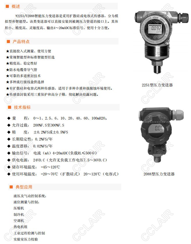 產(chǎn)品: 瀏覽次數(shù):505Y2088KAA2T1,Y2088KAB2T1AENN,Y2251,Y2088智能壓力變送器