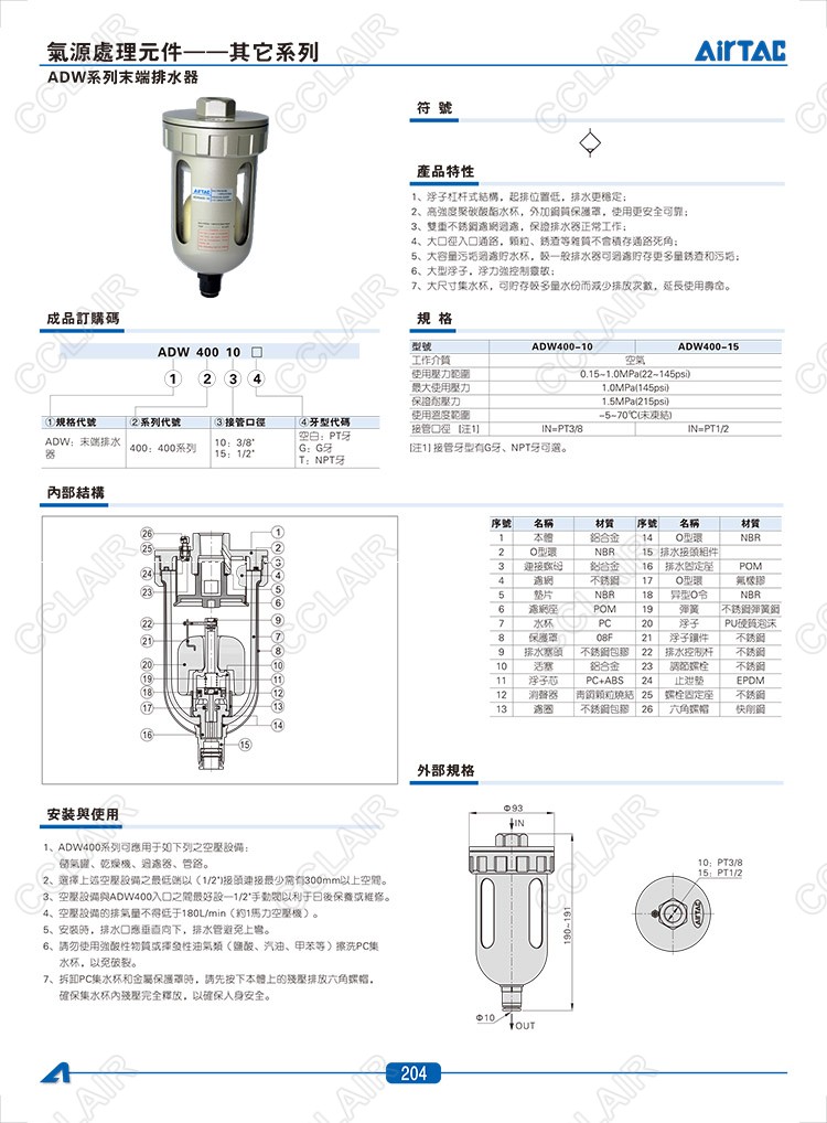 詳細(xì)信息 ADW400-10,ADW400-15,AIRTAC排水器