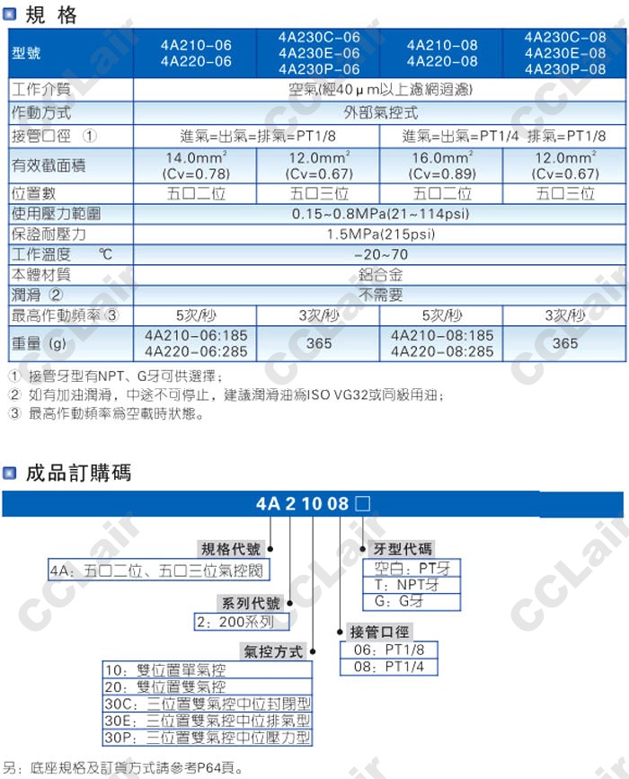 4A210-08-T,4A220-08-T,4A230C-08-T,4A230E-08-G,4A230P-10-G,4A230C-10-G,,4A220-10-G,氣控閥