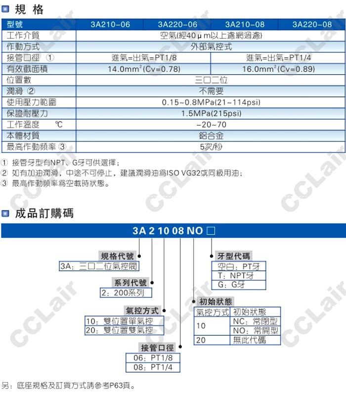 3A210-06,3A220-06,3A210-08,3A220-08,3A210-06-NC-T,3A220-06-NC-G,3A210-08-NO-G,氣控閥 |