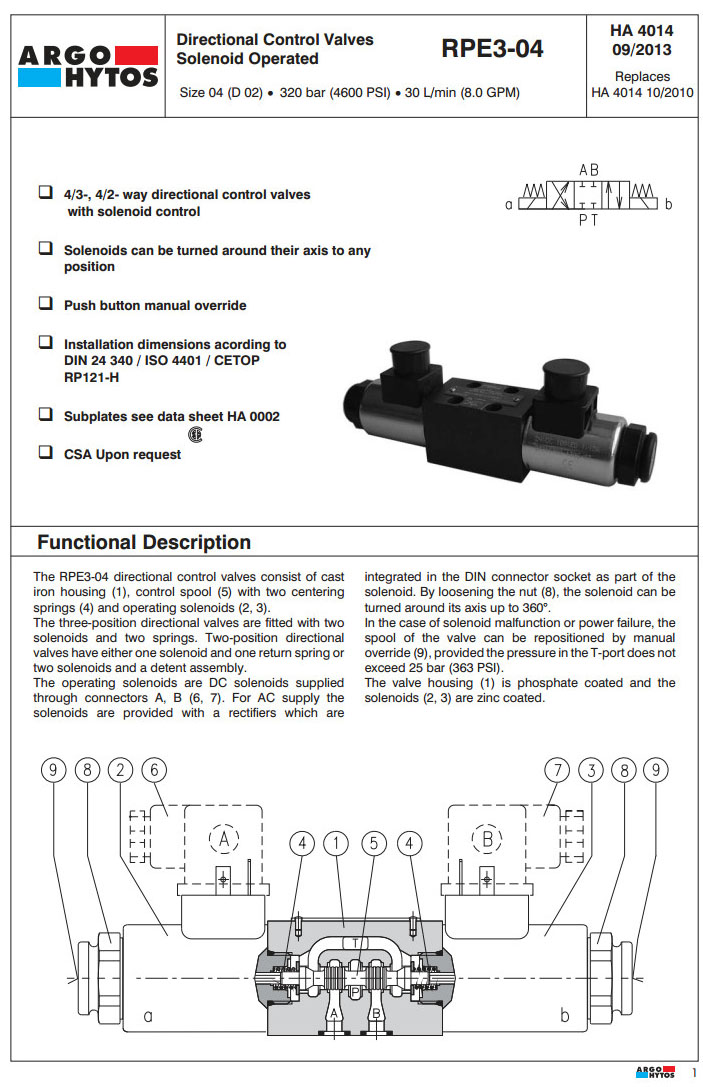 首頁 > 產(chǎn)品&解決方案 > RPE3-042,RPE3-043,RPE3-042Z11/01200E1,RPE3-043C11/23050E5,RPE3-043Y11/02400E1,ARGO電磁方向控制閥