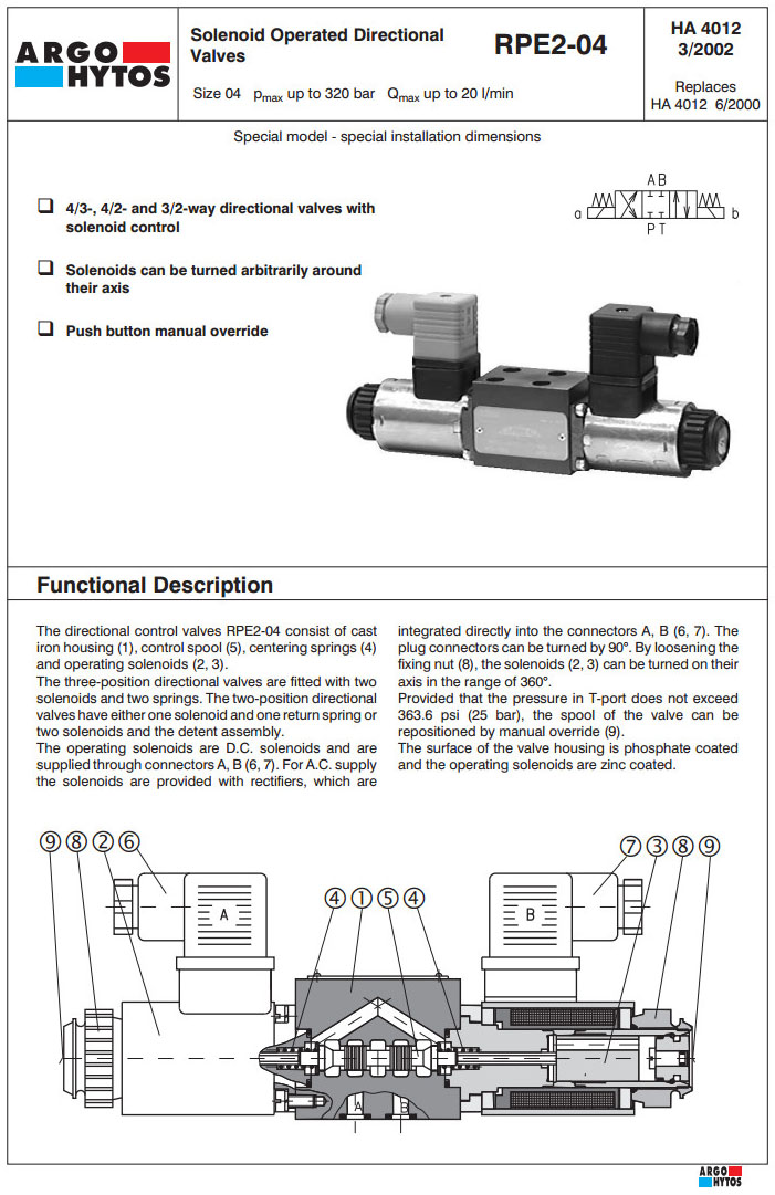 首頁(yè) > 產(chǎn)品&解決方案 > RPE2-042,RPE2-043,RPE2-042C11/01200,RPE2-043P51/01400,RPE2-042Z51/01400,ARGO電磁方向控制閥
