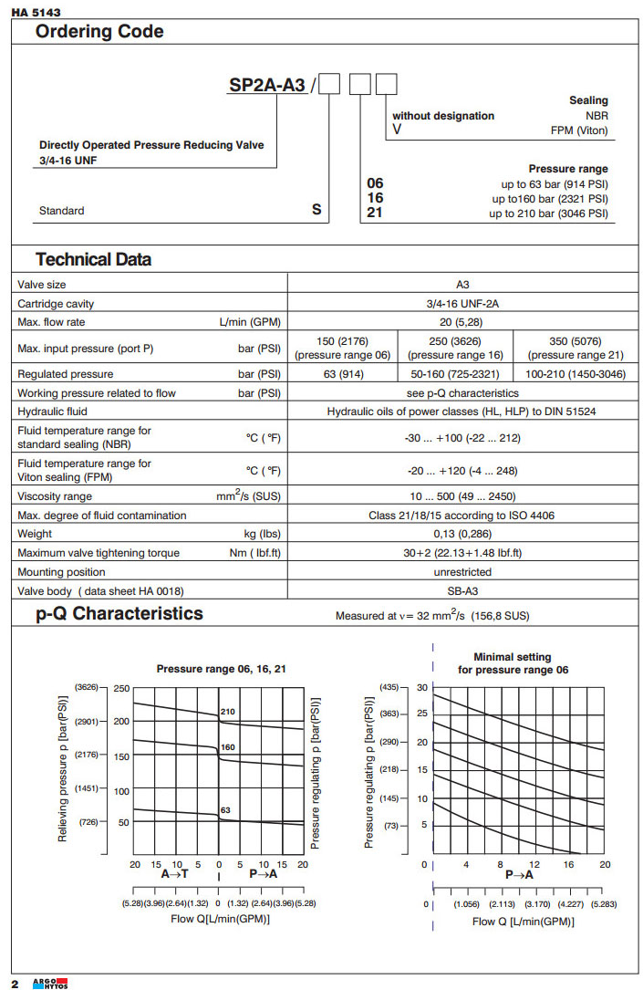 SP2A-A3/S21,SP2A-A3/S16,SP2A-A3/S06,ARGO直動式減壓閥