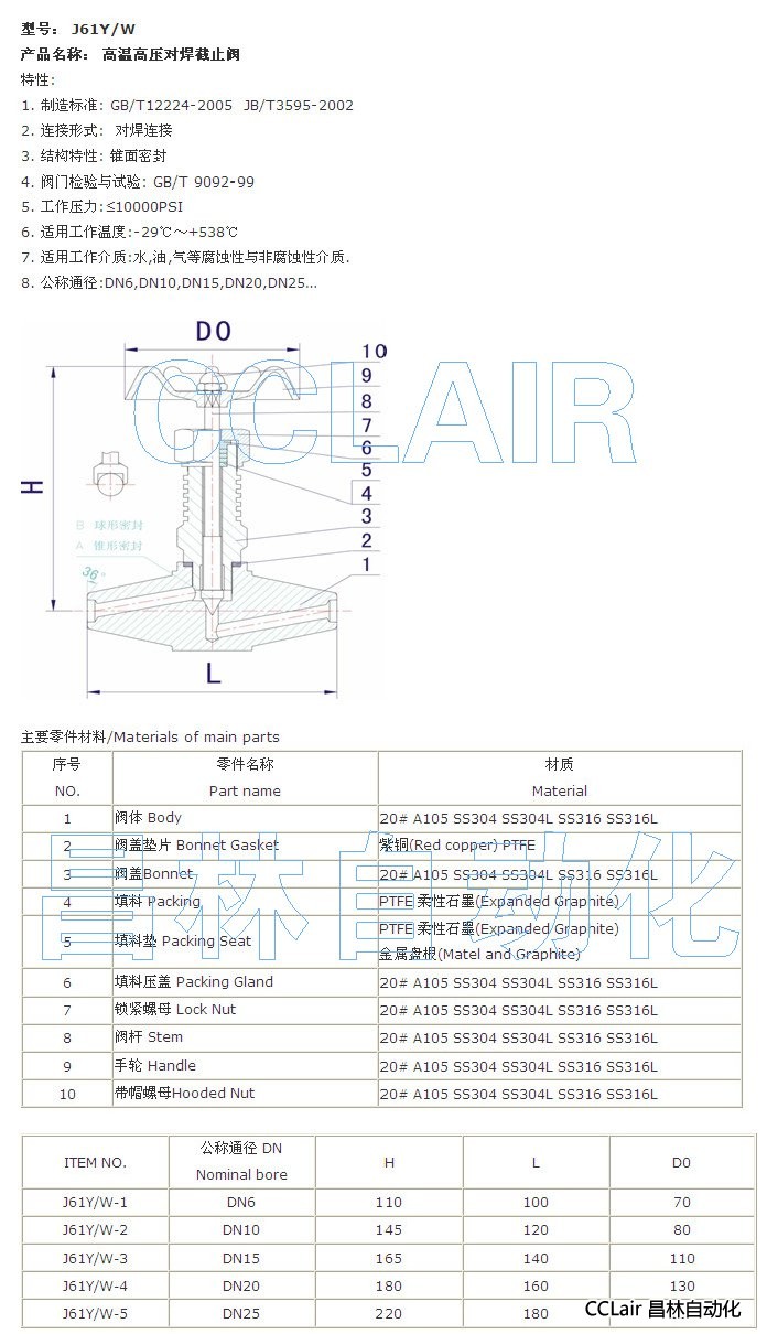 J61Y/W-1,J61Y/W-2,J61Y/W-3,J61Y/W-4,J61Y/W-5,高溫高壓對焊截止閥