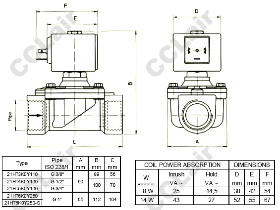 21HT3K0Y110,21HT4K0Y160,21HT5K0Y160,21HT6K0Y250,21HT6K0Y250-S,意大利ODE兩位兩通電磁閥