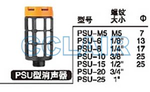 詳細(xì)信息 PSU-M5,PSU-6,PSU-8,PSU-10,PSU-15,PSU-20,PSU-25,塑料消聲器
