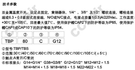 TBS50A,TBP50A,TBP30A,TBP40A,TBP60A,TBP70A,TBP80A,TBP90A,TBS90A,TBS100A,TBS105A,雙金屬溫度開(kāi)關(guān)