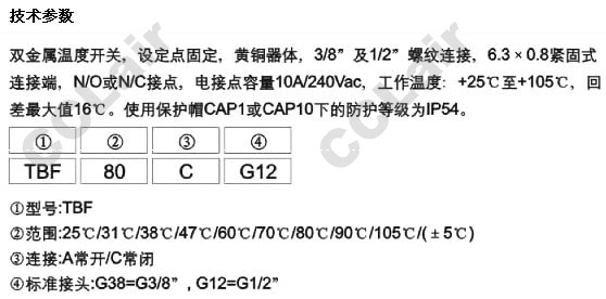 TBF25A-G38,TBF31A-G12,TBF38A,TBF60A,TBF70A,TBF80A,TBF90A,TBF100A,TBF105A,雙金屬溫度開關(guān)