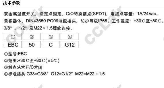 詳細(xì)信息 EBC50A-G38,EBC50A-G12,EBC50A-M22,EBC50C-G38,EBC50C-G12,EBC50C-M22,雙金屬溫度開關(guān)