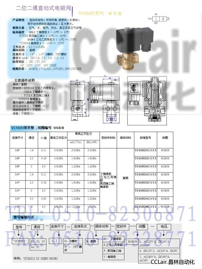 YCSM52011,YCSM52012,YCSM52021,YCSM52022,YCSM52031,二位二通直動(dòng)式電磁閥