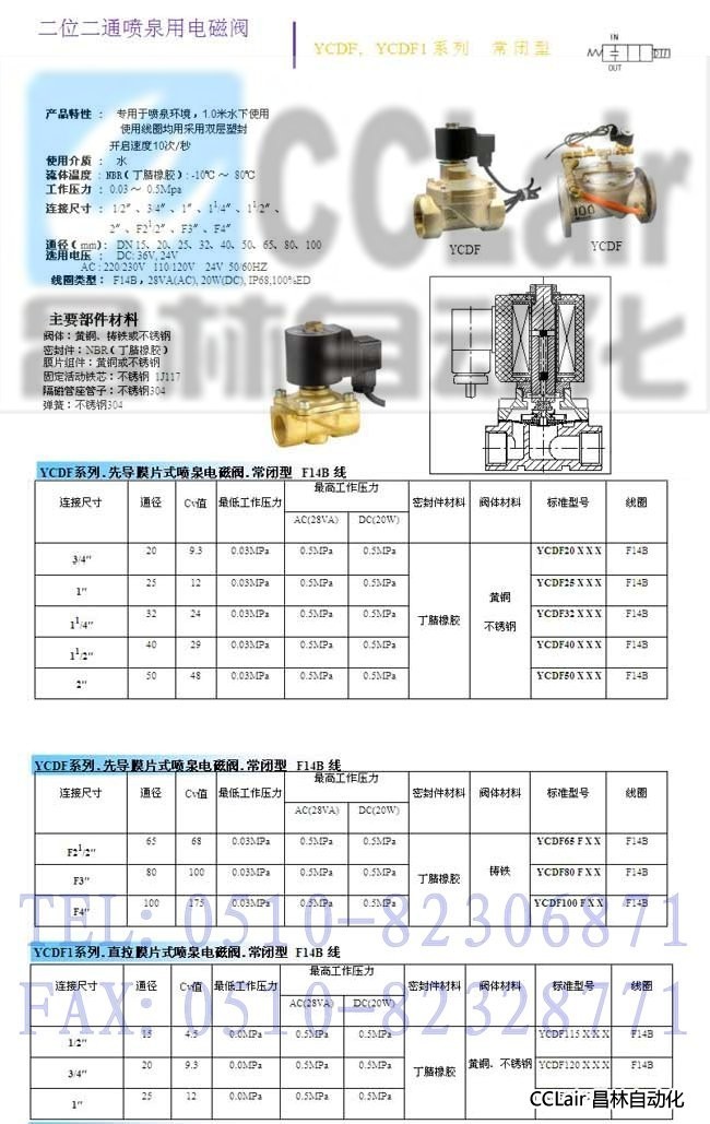 YCDF112,YCDF115,YCDF120,YCDF125,YCDF32,二位二通膜片式噴泉專用電磁閥 ,